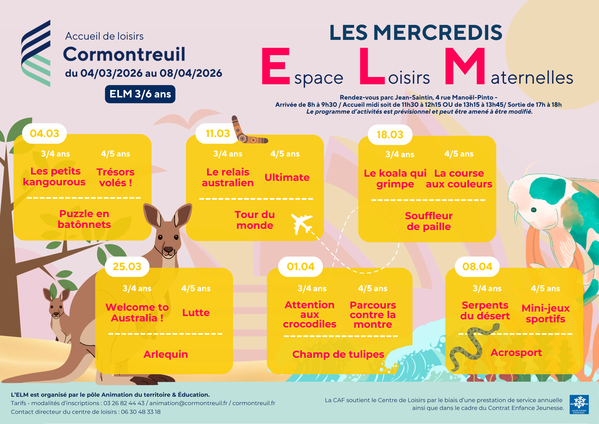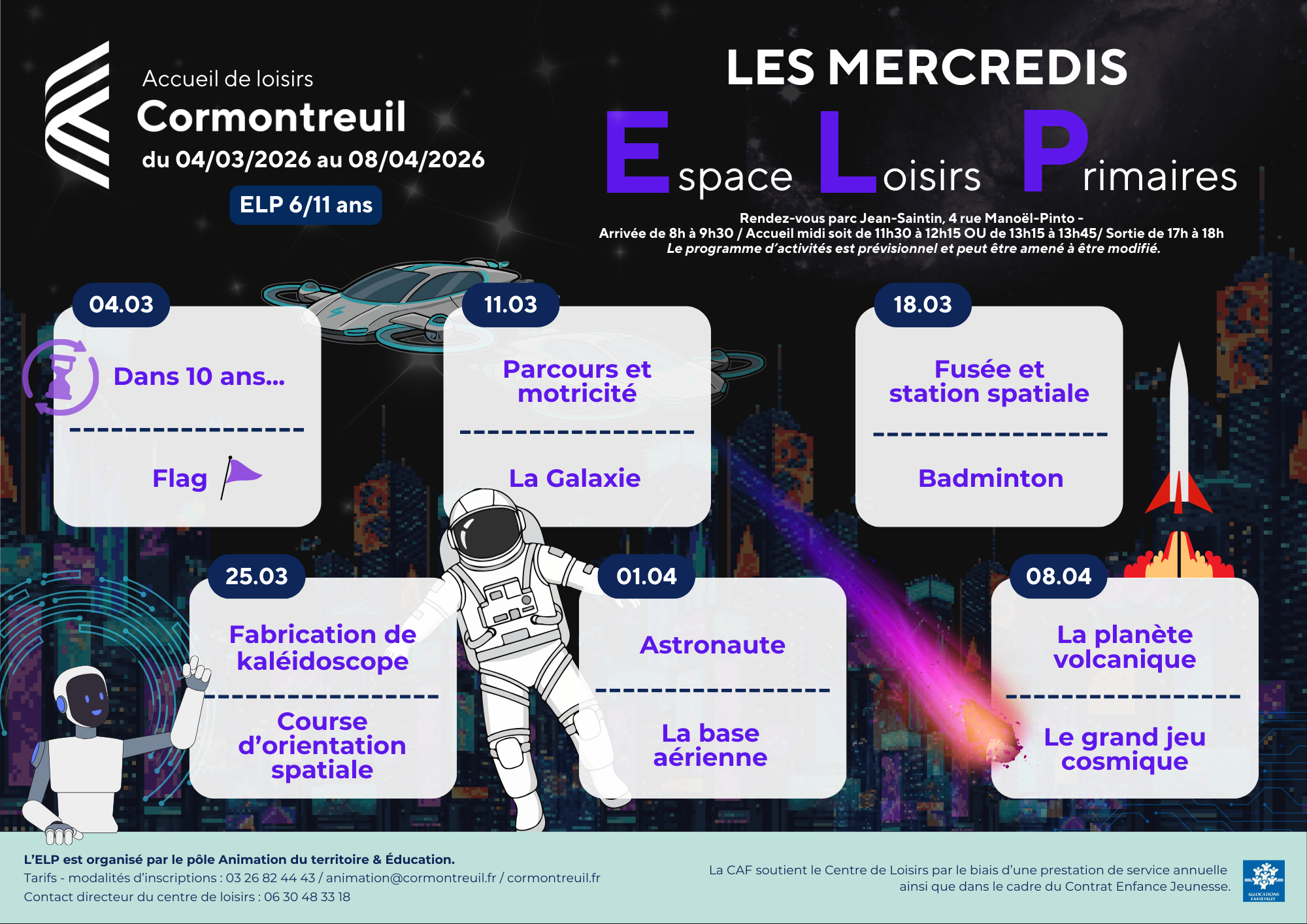 Contact : 03.26.35.06.44 (Accueil du centre de loisirs) / 03.26.82.44.43 (Service animation en mairie)